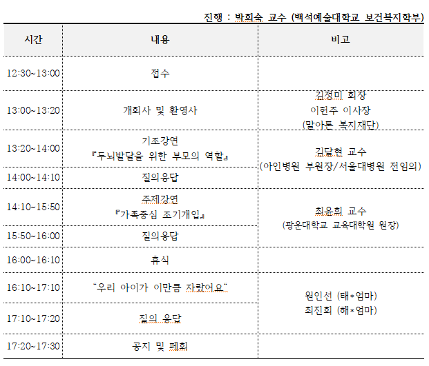 주제 : 가족중심 조기개입에서 RT 반응성 상호작용 교수의 가치 부제 : '우리아이가 이 만큼 자랐어요'